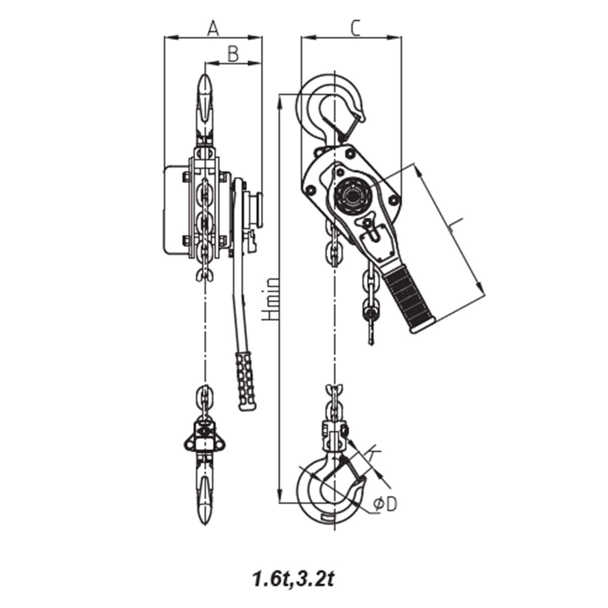 CMU (T) Chaine montée/tour Charge nominal Charge en essai A B C D H L K Poids poids/m de chaine